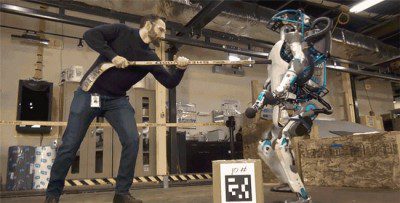 Boston Dynamics Next Generation Atlas Robot is startling in its ability to handle objects and walk over rough terrain. But even more interesting is the reaction of observers to the robot's plight as his handler Steve pushes him around with a hockey stick. The video has turned out to be an unintended social experiment, eliciting over 24,000 comments, many of which anthropomorphize the robot, while others veer toward paranoid, dystopian scenarios where Atlas is the advanced guard of a robot army. The robot balances by using sensors in its body and legs and LIDAR, a surveying technology that measures distance by illuminating a target with a laser light, as well as stereo sensors in its head to avoid obstacles and help navigate rough terrain and manipulate objects. Designed to operate outdoors and inside buildings, the new Atlas is 5' 9" tall, 180 pounds, electrically powered and hydraulically actuated. The real question is what will happen when Atlas shows up on the line at an Amazon Warehouse. Will co-workers see the robot as a friend or an enemy? … [Read more...] about Next Generation Atlas Robot Sparks Sympathy and Dread