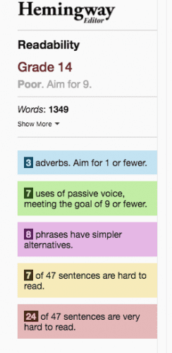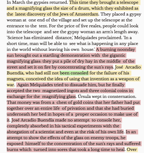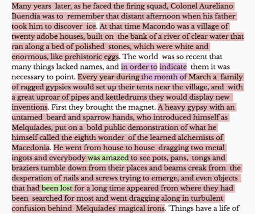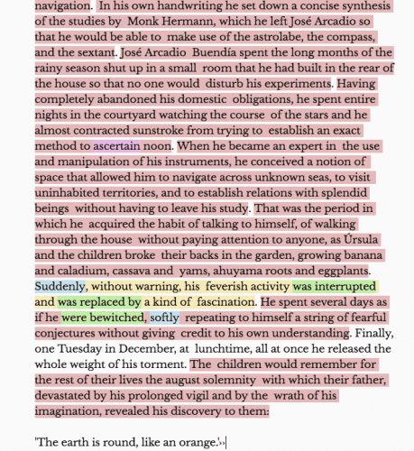 And as you will see, creating software that acts as a definitive, authoritarian template is a slippery process. To illustrate my point, I ran a section of Nobel Prize winning novelist Gabriel García Márquez’s masterpiece One Hundred Years of Solitude, through the Hemingway Editor.